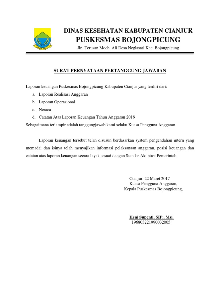 Misalkan seorang mendapat surat tugas untuk melakukan audit keuangan, maka orang ini perlu menunjukkan surat tugasnya kepada kepala keuangan sebelum melakukan tugasnya. Ada beberapa laporan pokok yang tercantum dalam laporan pertanggungjawaban (lpj), yaitu arus keluar masuknya keuangan (cash flow), agenda yang dilaksanakan, dan pencapaian dari kegiatan. Laporan pertanggungjawaban ini dibuat sebagai bentuk pertanggungjawaban resmi dan tertulis oleh para panitia atas kegiatan yang dilaksanakan. Jan 31, 2019 · contoh laporan keuangan lengkap dengan excel. Kita bisa membuat satu sheet yang didalamnya mencakup hutang, piutang, investasi, gaji, persediaan barang, dll.